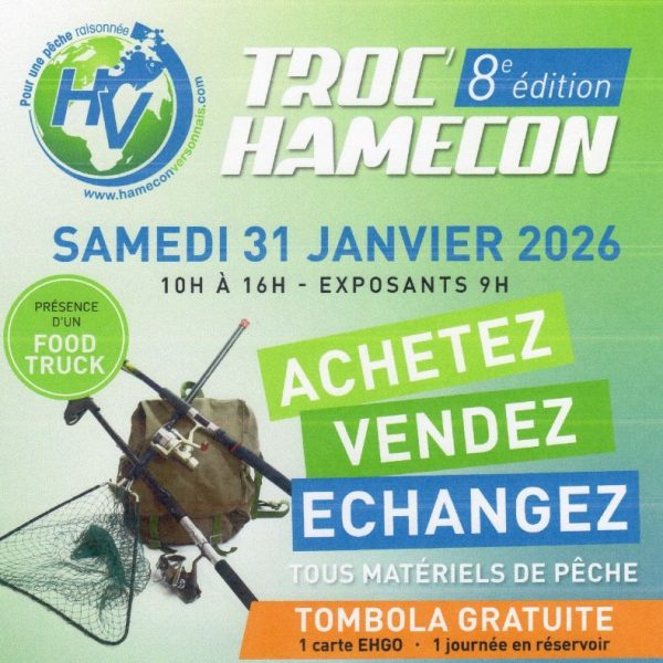 Vendez, achetez, échangez tous matériels de pêche à la salle des Trois Ormes. De nombreuses animations et conférences, diffusion de vidéo et tombola ainsi que vente de cartes de pêche.