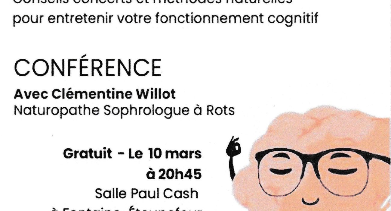 Une conférence « un cerveau au top » animée par Clémentine Willot, naturopathe, sophrologue et organisée par l’asso Gym Fontaine Verson.